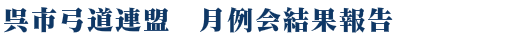 呉市弓道連盟百射会 男子の部 第一位 井上隆啓 遠的 32中 近的 39中 合計 71中/100射 第二位 久保一夫 遠的 31中 近的 37中 合計 68中/100射 第三位 兵頭健太郎 遠的 20中 近的 32中 合計 52中/100射 女子の部 第一位 松葉邦枝 遠的 15中 近的 27中 合計 42中/100射 |
